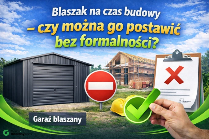 Tak i to często najlepsze rozwiązanie. W trakcie budowy domu masz prawo zgłosić garaż blaszany jako tymczasowy obiekt zaplecza budowy - może to być garaż, kontener, szopa na narzędzia itp.