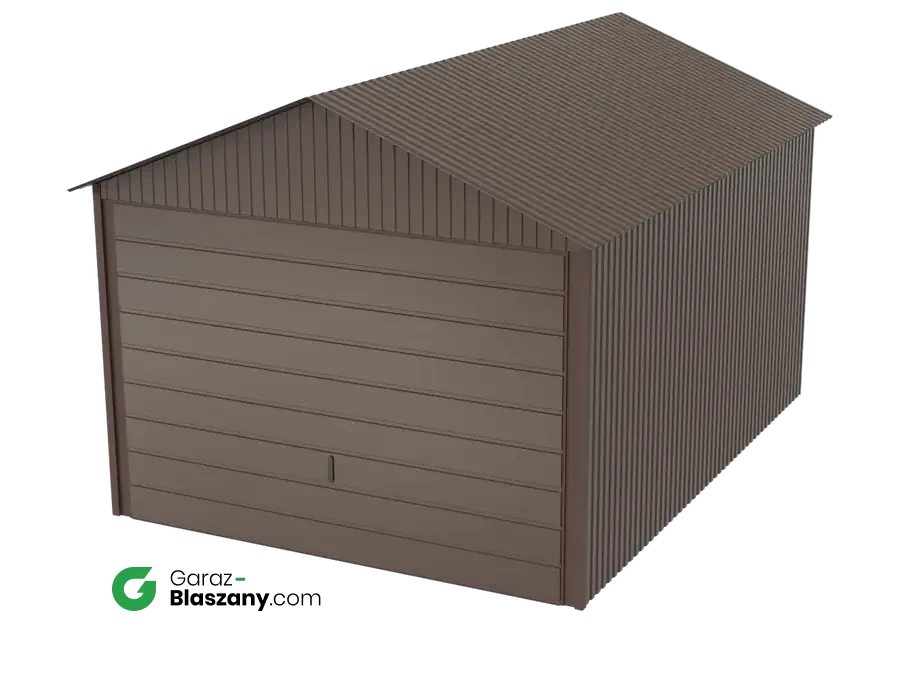 Garaż blaszany 3x4 brązowy błysk dach dwuspadowy brama uchylna