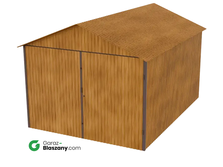 Garaż blaszany 3x4 drewnopodobny Złoty Dąb dach dwuspadowy brama dwuskrzydłowa
