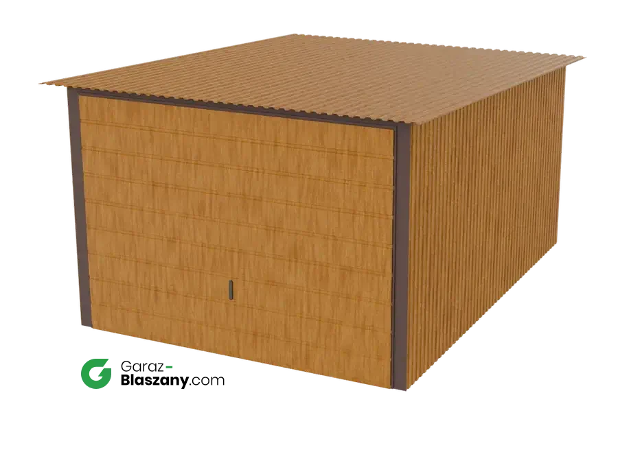 Garaż blaszany 3x4 drewnopodobny Złoty Dąb dach jednospadowy brama uchylna
