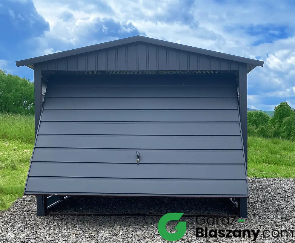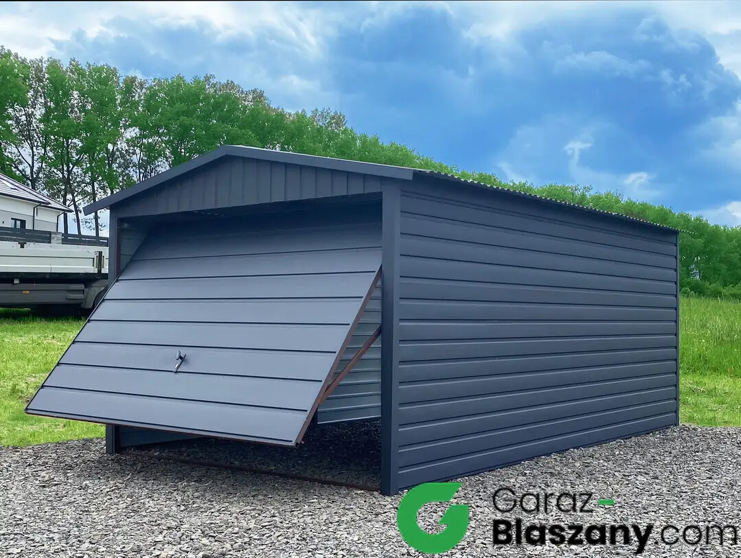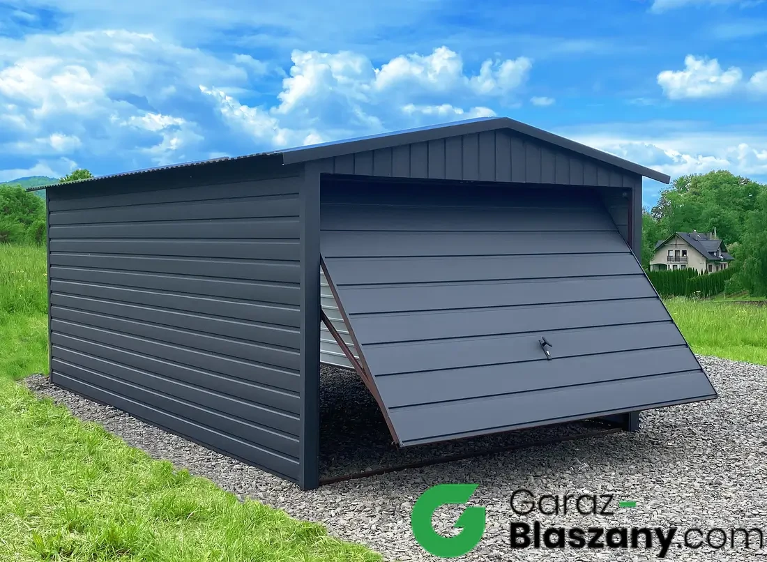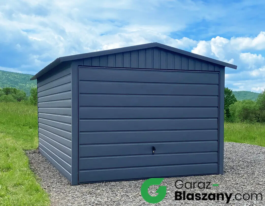 Garaż blaszany 3x5 m, grafit, z szerokim panelem