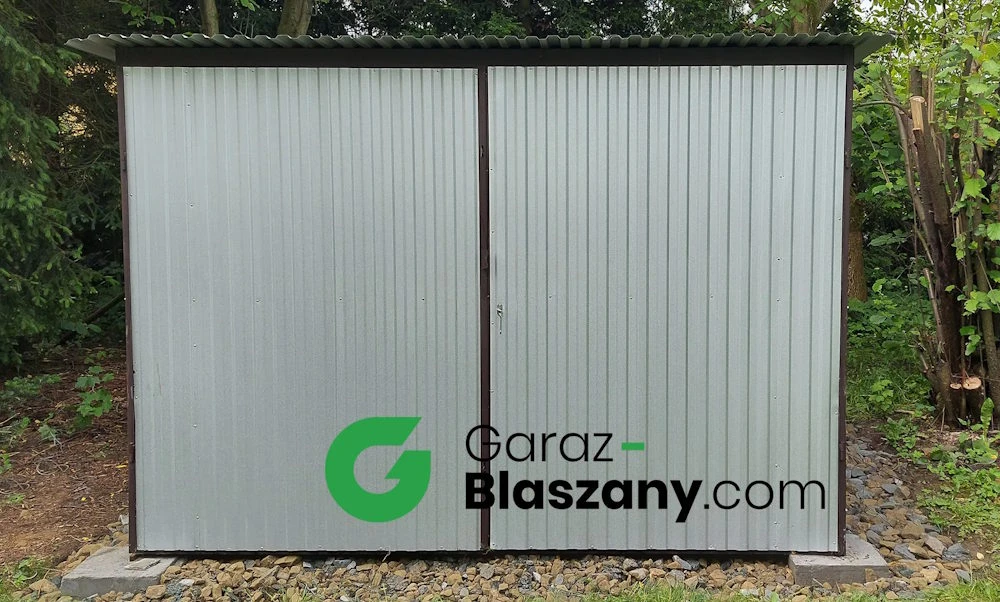 Garaż blaszany 3x5 ocynkowany ogniowo, jednospadowy, otwierany na boki - świetne rozwiązanie jako garaż dla samochodu lub schowek narzędziowy, a nawet jako domek ogrodowy.