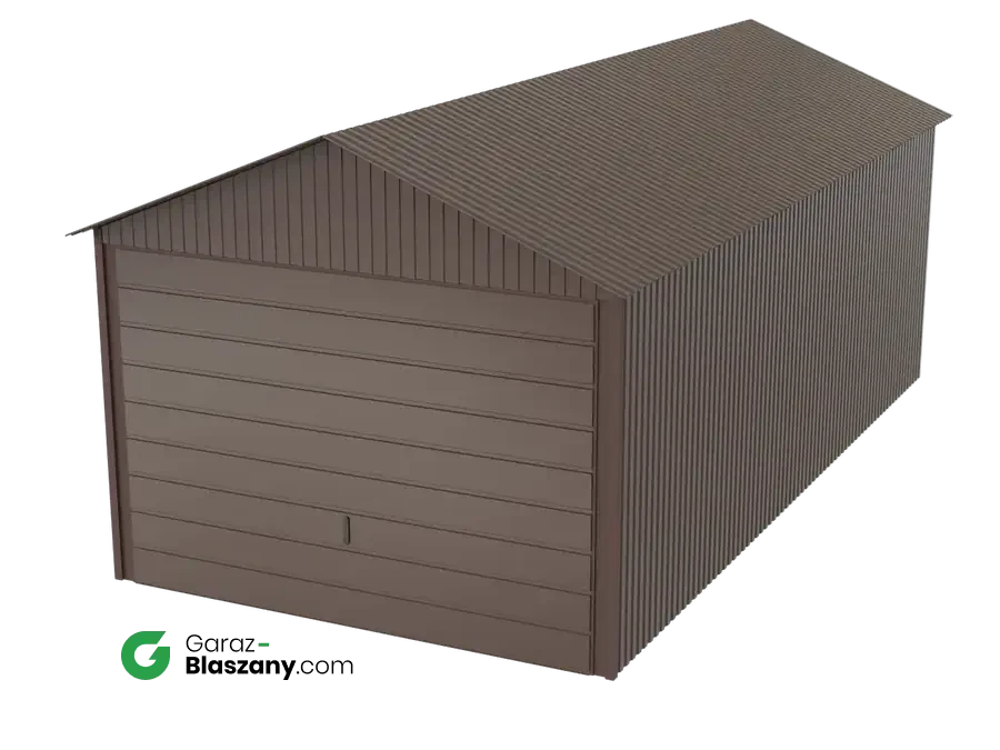 Garaż blaszany 3x6 brązowy BŁYSK dach dwuspadowy brama uchylna