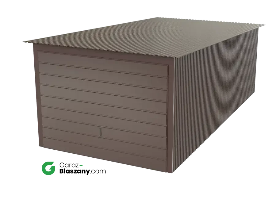 Garaż blaszany 3x6 brązowy BŁYSK dach jednospadowy brama uchylna