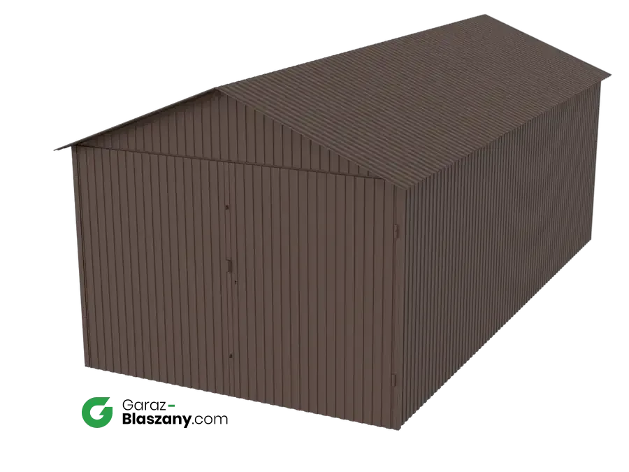 Garaż blaszany 3x6 brązowy MAT dach dwuspadowy brama dwuskrzydłowa