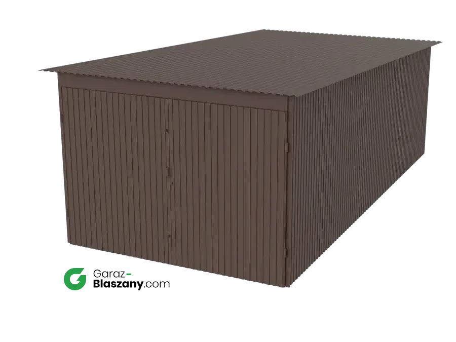 Garaż blaszany 3x6 brązowy MAT dach jednospadowy brama dwuskrzydłowa