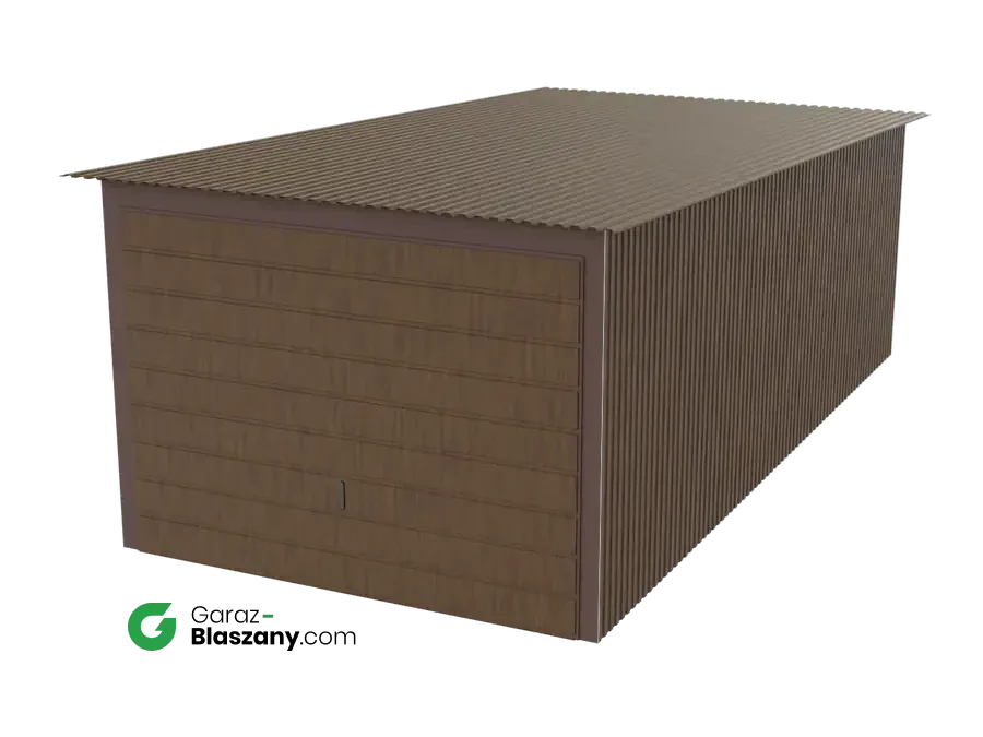 Garaż blaszany 3x6 drewnopodobny Orzech dach jednospadowy brama uchylna