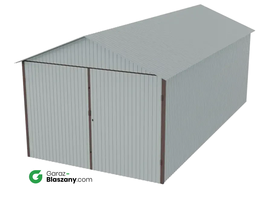 Garaż blaszany 3x6 ocynkowany Iszy gatunek dach dwuspadowy brama dwuskrzydłowa