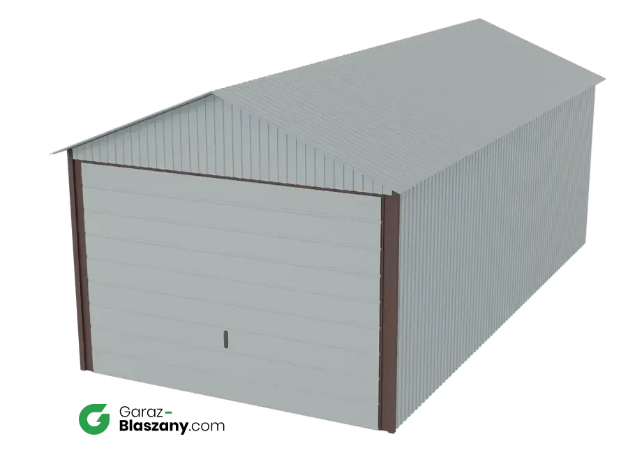 Garaż blaszany 3x6 ocynkowany Iszy gatunek dach dwuspadowy brama uchylna