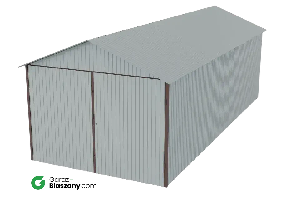 Garaż blaszany 3x7 blacha ocynkowana Iszy gatunek dach dwuspadowy brama dwuskrzydłowa