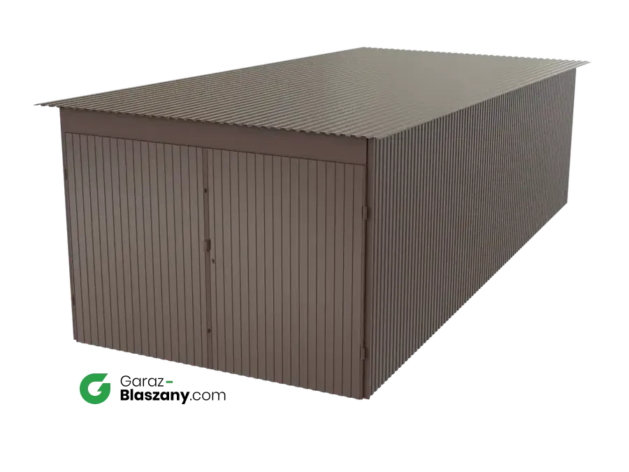 Garaż blaszany 3x7 brązowy dach jednospadowy brama dwuskrzydłowa