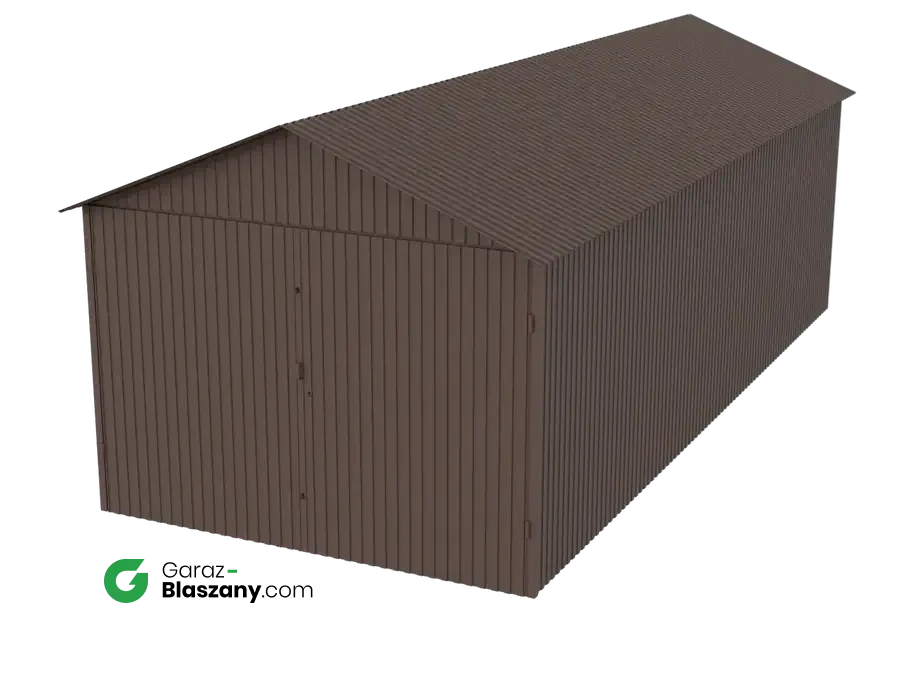 Garaż blaszany 3x7 brązowy mat dach dwuspadowy brama dwuskrzydłowa