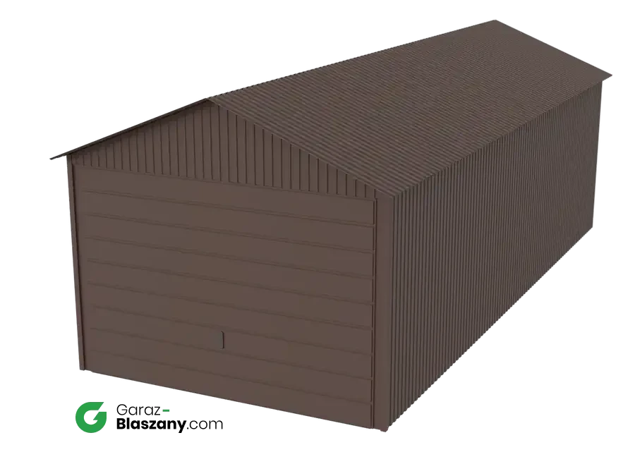 Garaż blaszany 3x7 brązowy mat dach dwuspadowy brama uchylna