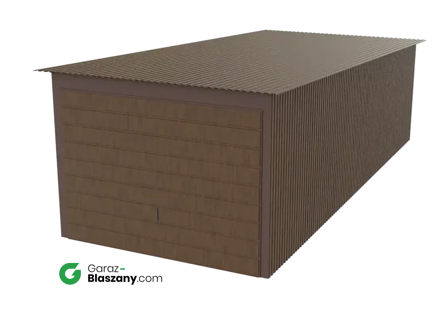 Garaż blaszany 3x7 drewnopodobny Orzech dach jednospadowy brama uchylna
