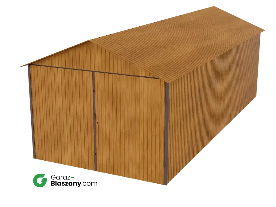 Garaż blaszany 3x7 drewnopodobny Złoty Dąb dach dwuspadowy brama dwuskrzydłowa