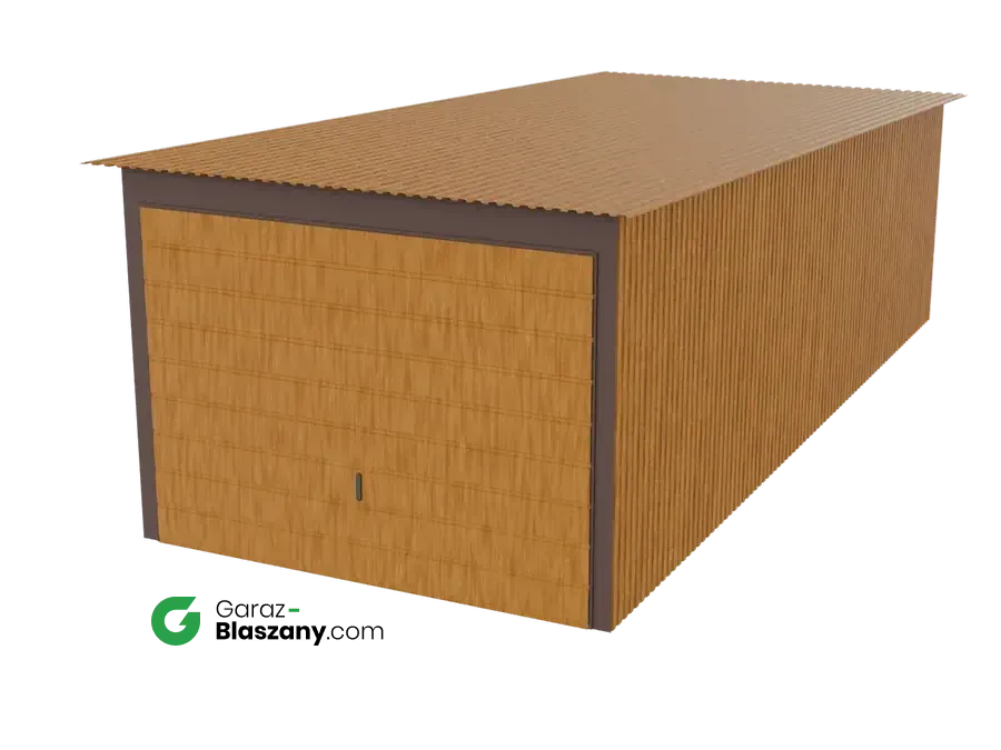 Garaż blaszany 3x7 drewnopodobny Złoty Dąb dach jednospadowy brama uchylna