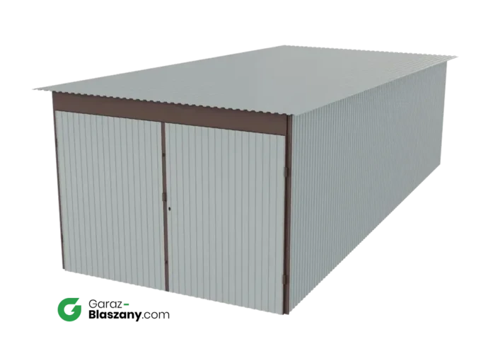 Garaż blaszany 3x7 ocynkowany dach jednospadowy brama dwuskrzydłowa