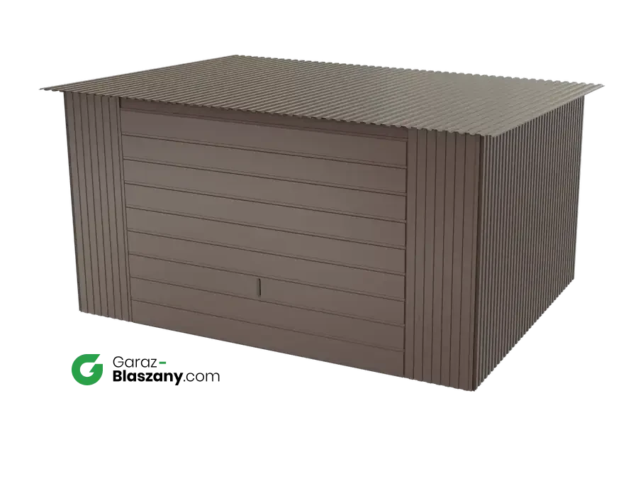 Garaż blaszany 4x3 brązowy BŁYSK dach jednospadowy brama uchylna