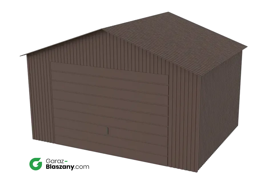 Garaż blaszany 4x3 brązowy MAT dach dwuspadowy brama uchylna