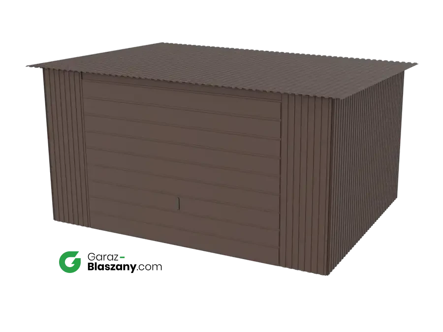 Garaż blaszany 4x3 brązowy MAT dach jednospadowy brama uchylna