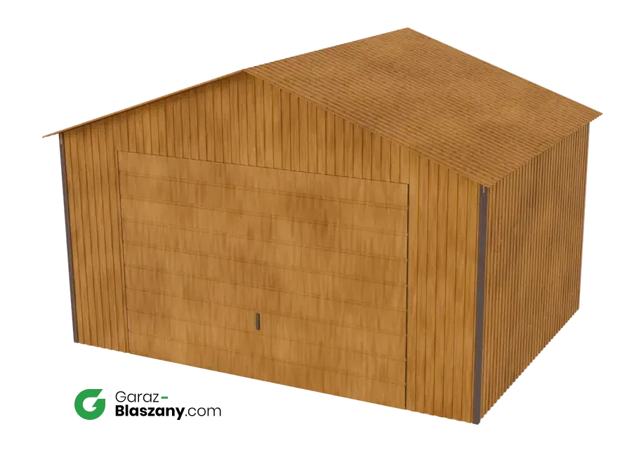 Garaż blaszany 4x3 drewnopodobny Złoty Dąb dach dwuspadowy brama dwuskrzydłowa