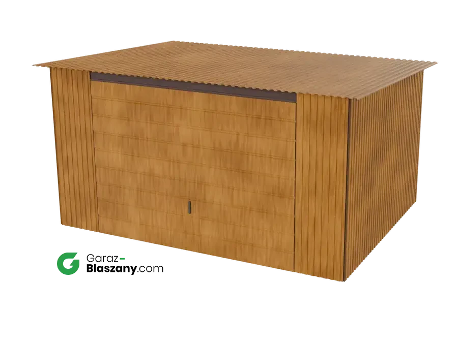 Garaż blaszany 4x3 drewnopodobny Złoty Dąb dach jednospadowy brama uchylna