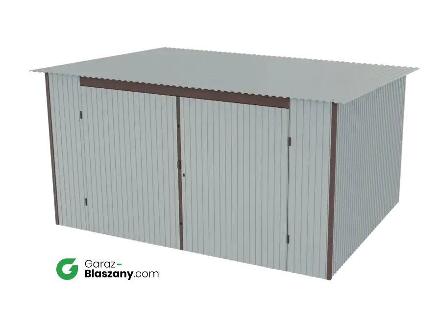 Garaż blaszany 4x3 ocynkowany Iszy gatunek dach jednospadowy brama dwuskrzydłowa