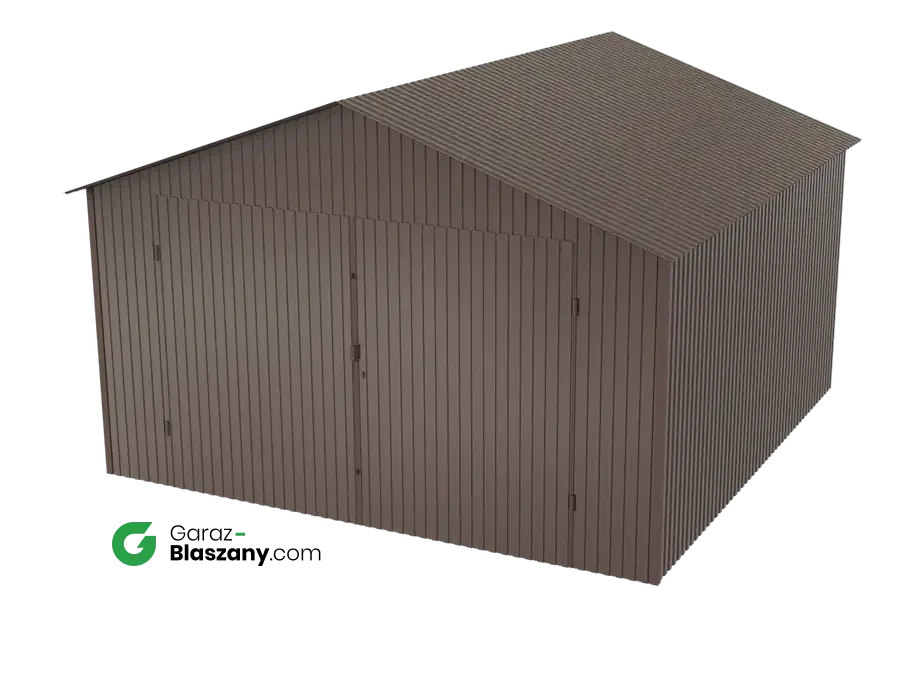 Garaż blaszany 4x4 brązowy MAT dach dwuspadowy brama dwuskrzydłowa