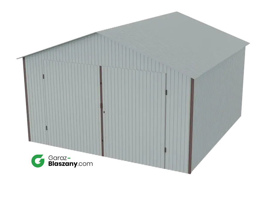 Garaż blaszany 4x4 ocynkowany Iszy gatunek dach dwuspadowy brama dwuskrzydłowa