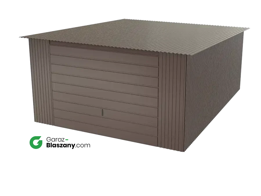 Garaż blaszany 4x5 brązowy BŁYSK dach jednospadowy brama uchylna