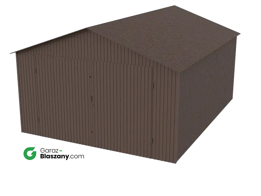Garaż blaszany 4x5 brązowy MAT dach dwuspadowy brama dwuskrzydłowa