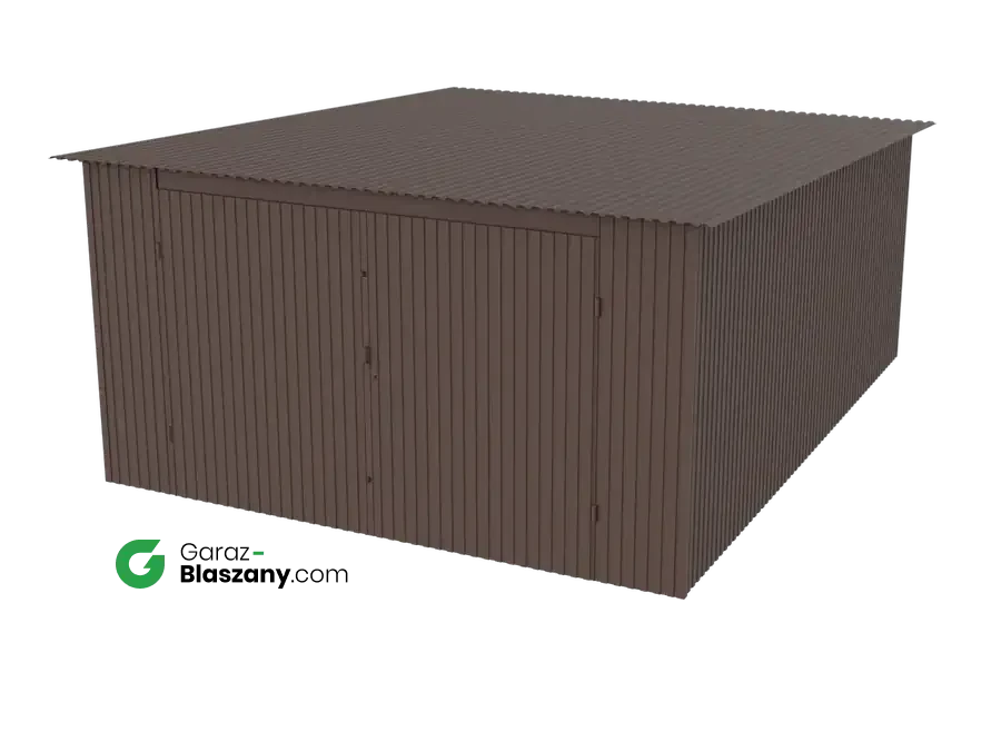 Garaż blaszany 4x5 brązowy MAT dach jednospadowy brama dwuskrzydłowa