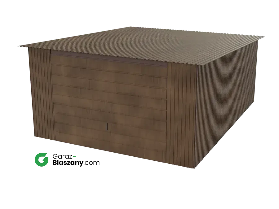 Garaż blaszany 4x5 drewnopodobny Orzech dach jednospadowy brama uchylna