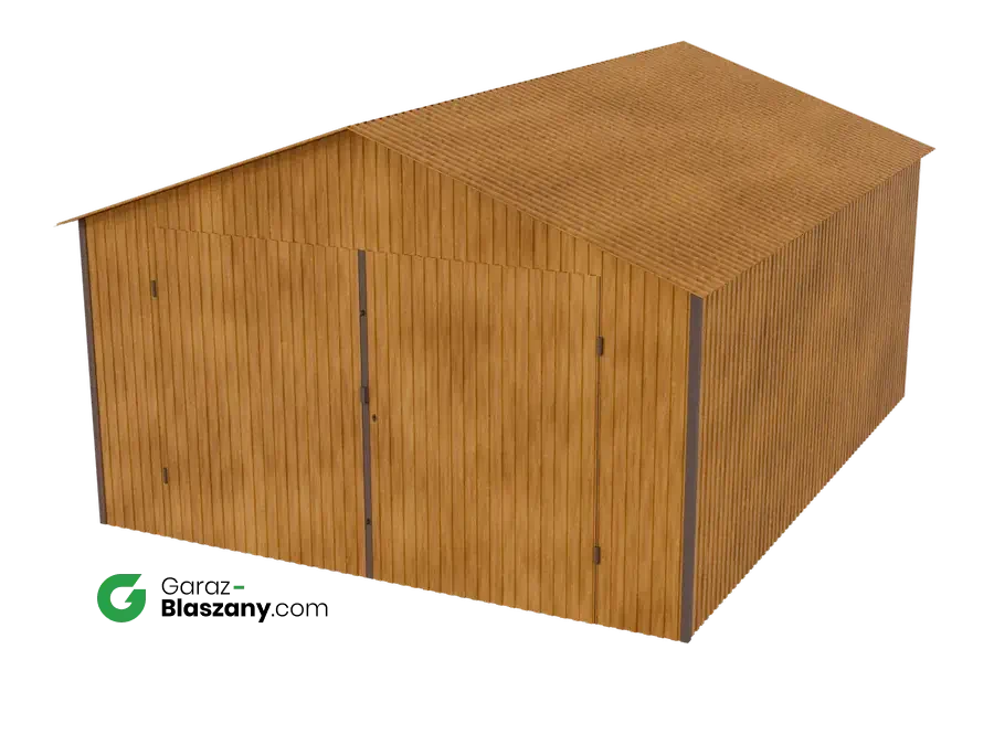 Garaż blaszany 4x5 drewnopodobny Złoty Dąb dach dwuspadowy brama dwuskrzydłowa