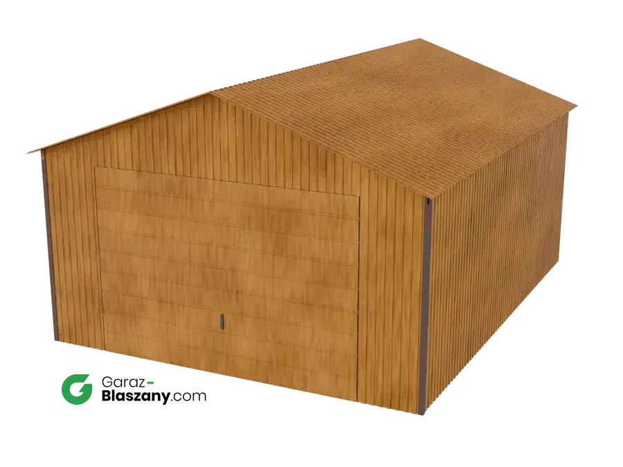 Garaż blaszany 4x5 drewnopodobny Złoty Dąb dach dwuspadowy brama uchylna