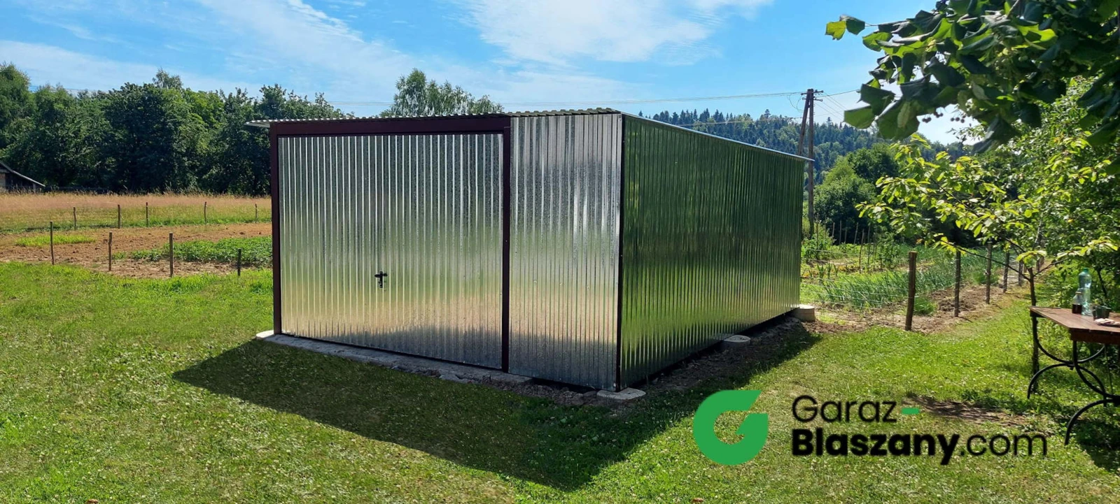Garaż blaszany 4x5,5 ocynkowany, dach jednospadowy, brama uchylna