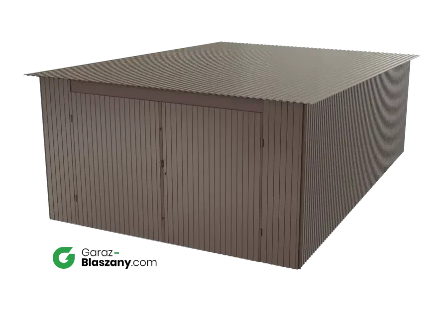 Garaż blaszany 4x6 brązowy BŁYSK dach jednospadowy brama dwuskrzydłowa