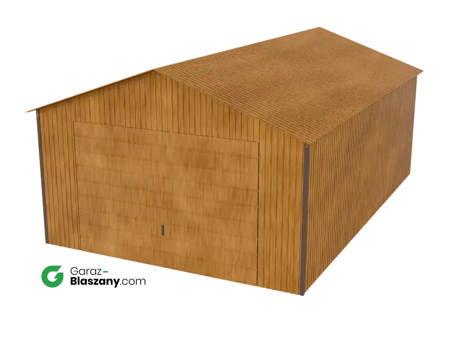 Garaż blaszany 4x6 drewnopodobny Złoty Dąb dach dwuspadowy brama uchylna