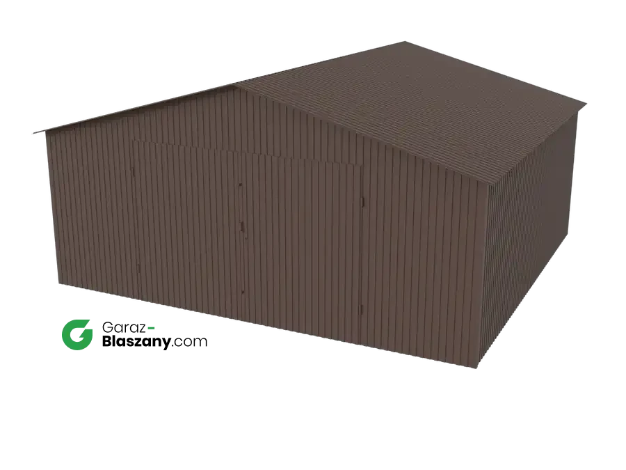 Garaż blaszany 5,5x5 brązowy MAT dach dwuspadowy brama dwuskrzydłowa