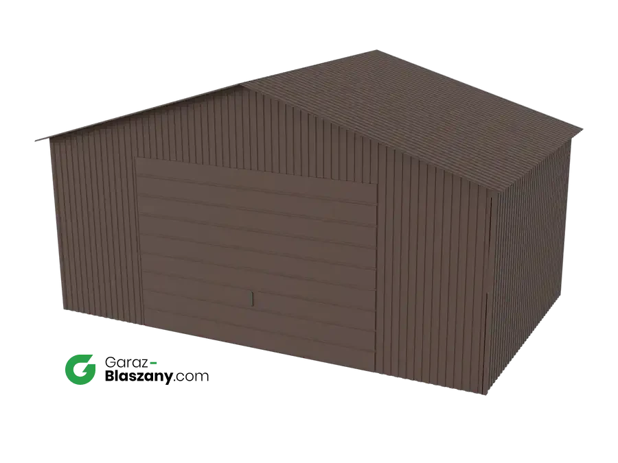 Garaż blaszany 5x3 brązowy MAT dach dwuspadowy brama uchylna