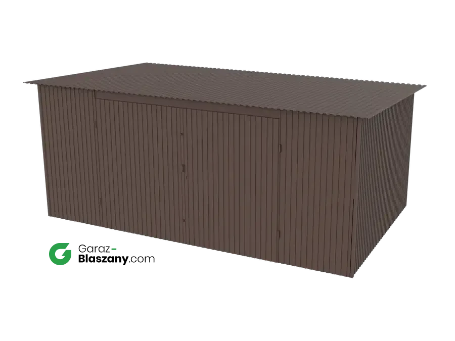 Garaż blaszany 5x3 brązowy MAT dach jednospadowy brama dwuskrzydłowa - doskonale nadaje się jako domek narzędziowy lub niewielki magazyn dla firm. Łączy praktyczne zalety typowego garażu z minimalnym wykorzystaniem przestrzeni co czyni go uniwersalnymi idealnym do montażu na gęściej zabudowanych przestrzeniach.