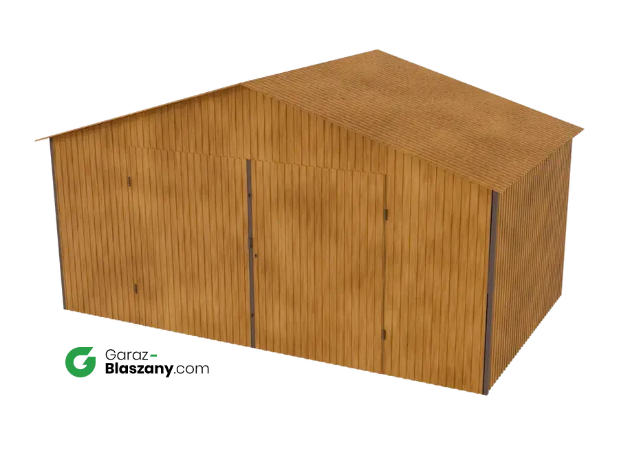 Garaż blaszany 5x3 drewnopodobny Złoty Dąb dach dwuspadowy brama dwuskrzydłowa
