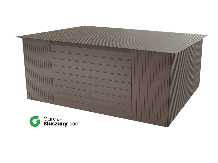 Garaż blaszany 5x4 brązowy BŁYSK dach jednospadowy brama uchylna