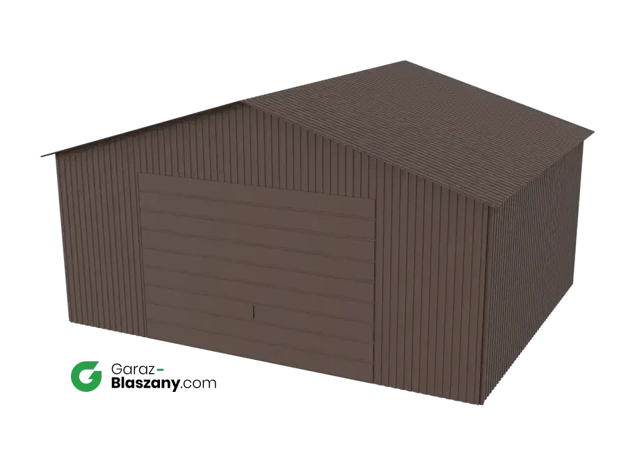 Garaż blaszany 5x4 brązowy MAT dach dwuspadowy brama uchylna