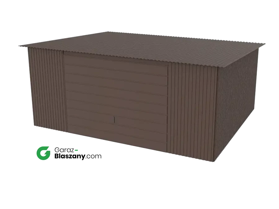 Garaż blaszany 5x4 brązowy MAT dach jednospadowy brama uchylna