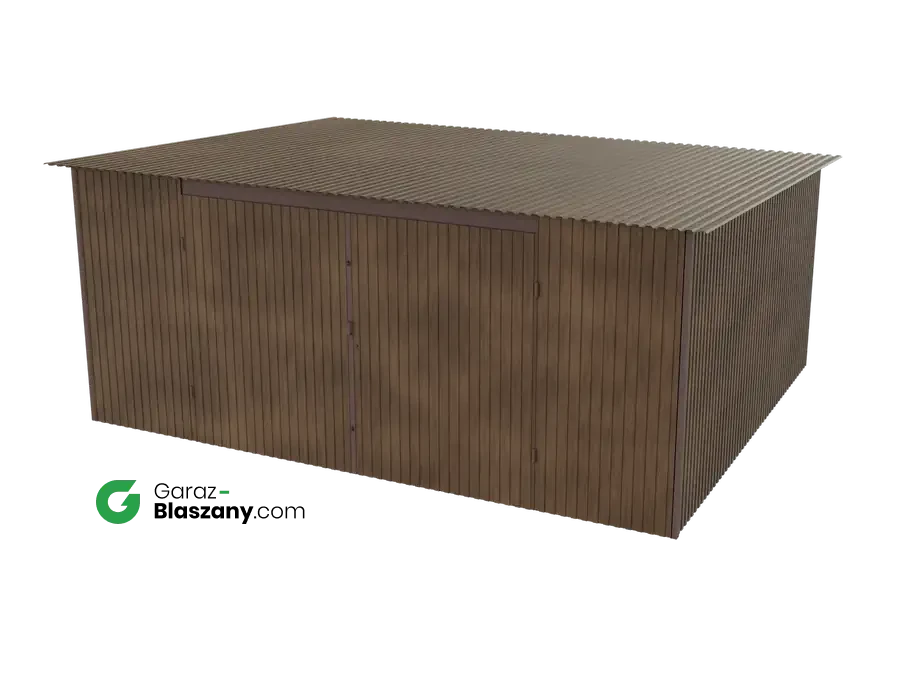 Garaż blaszany 5x4 drewnopodobny Orzech dach jednospadowy brama dwuskrzydłowa