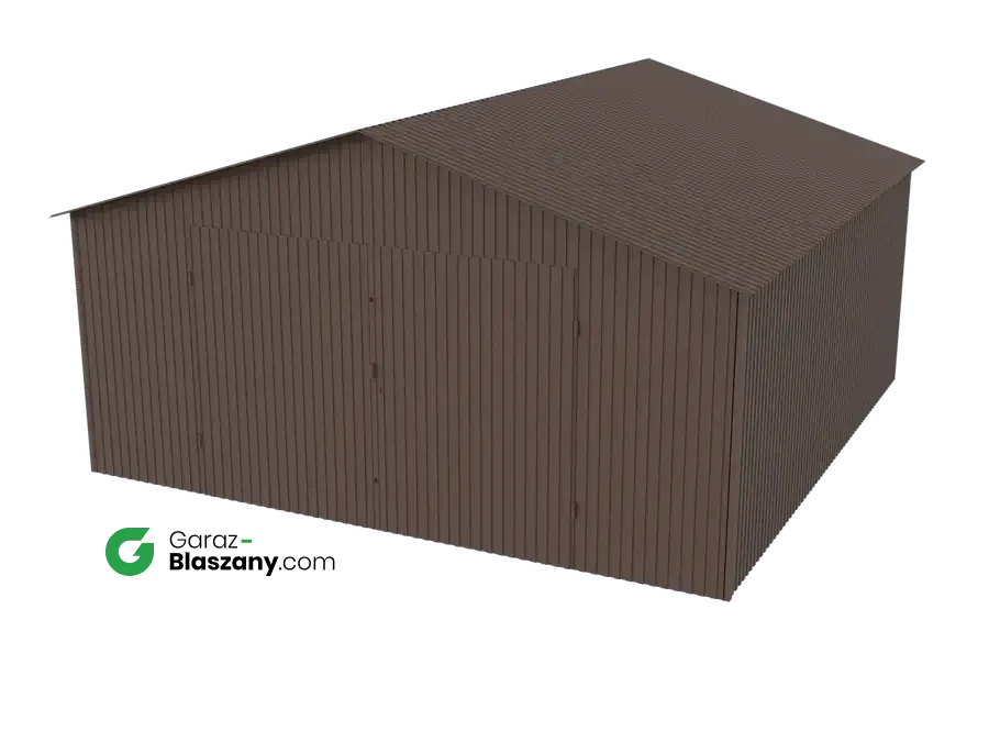 Garaż blaszany 5x5 brązowy MAT dach dwuspadowy brama dwuskrzydłowa