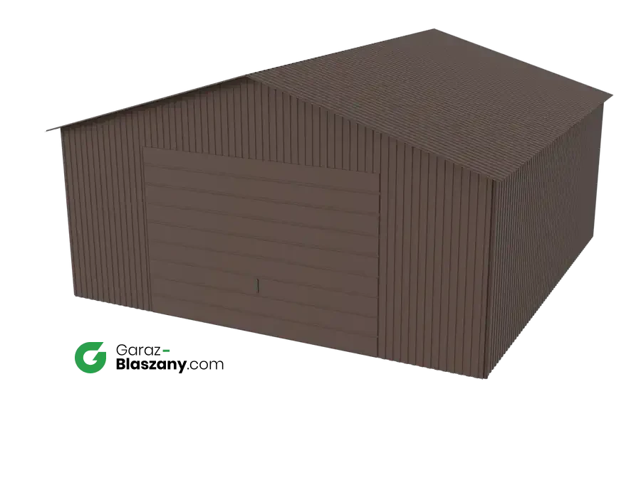 Garaż blaszany 5x5 brązowy MAT dach dwuspadowy brama uchylna
