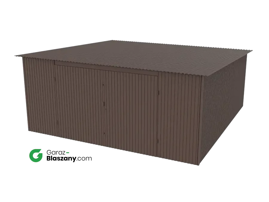 Garaż blaszany 5x5 brązowy MAT dach jednospadowy brama dwuskrzydłowa - doskonale nadaje się jako domek narzędziowy lub niewielki magazyn dla firm. Łączy praktyczne zalety typowego garażu z minimalnym wykorzystaniem przestrzeni co czyni go uniwersalnymi idealnym do montażu na gęściej zabudowanych przestrzeniach.