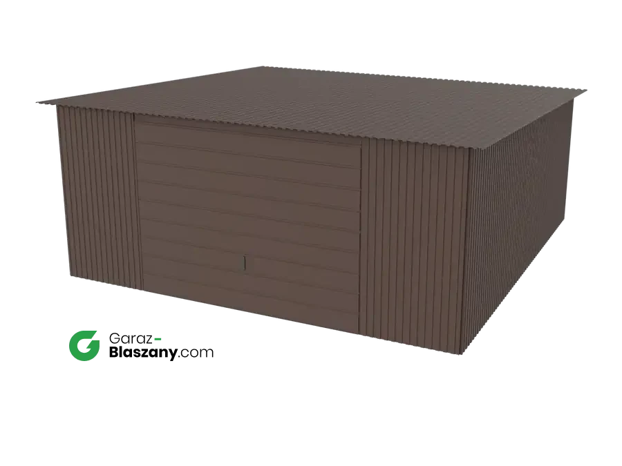 Garaż blaszany 5x5 brązowy MAT dach jednospadowy brama uchylna